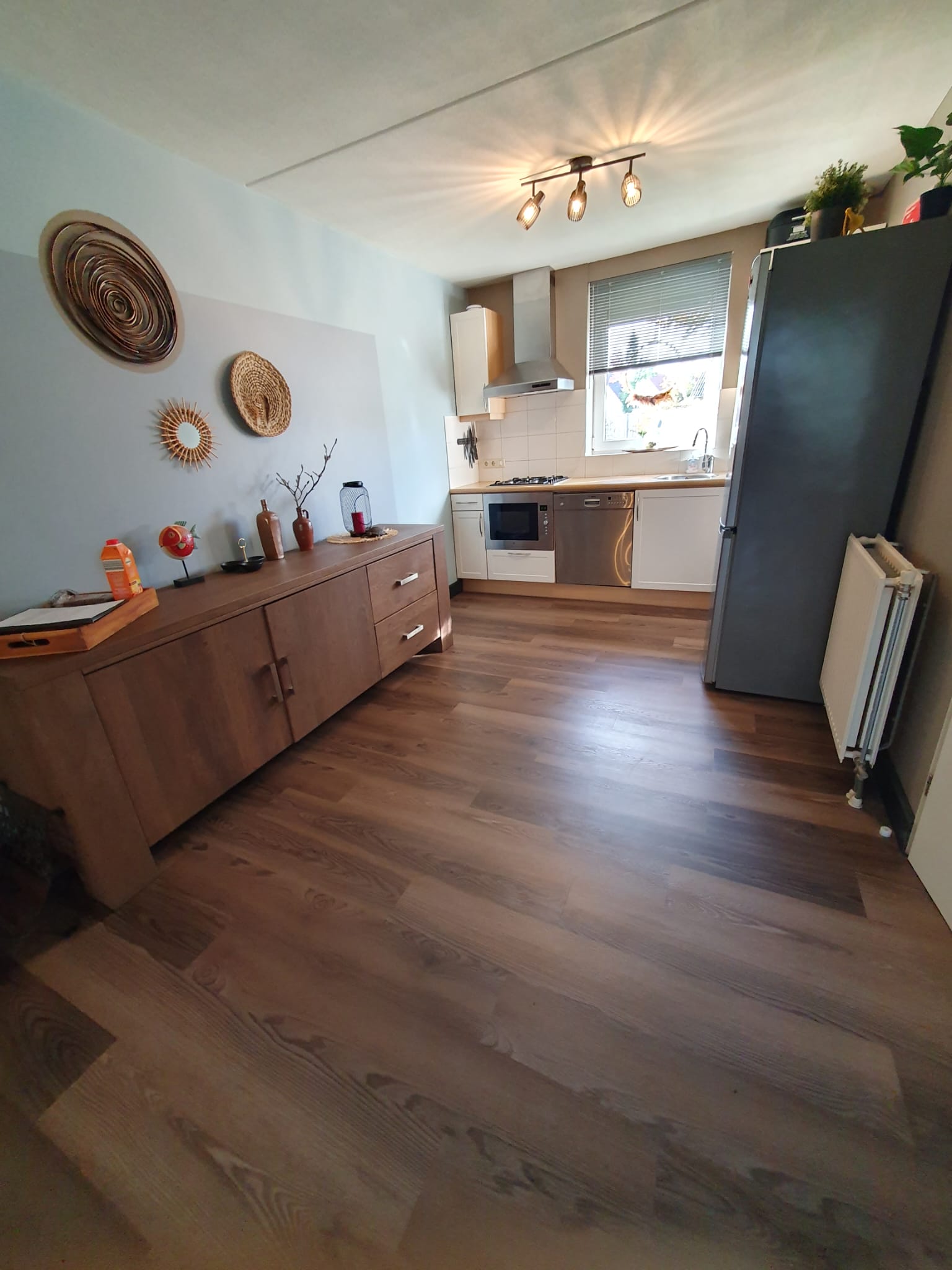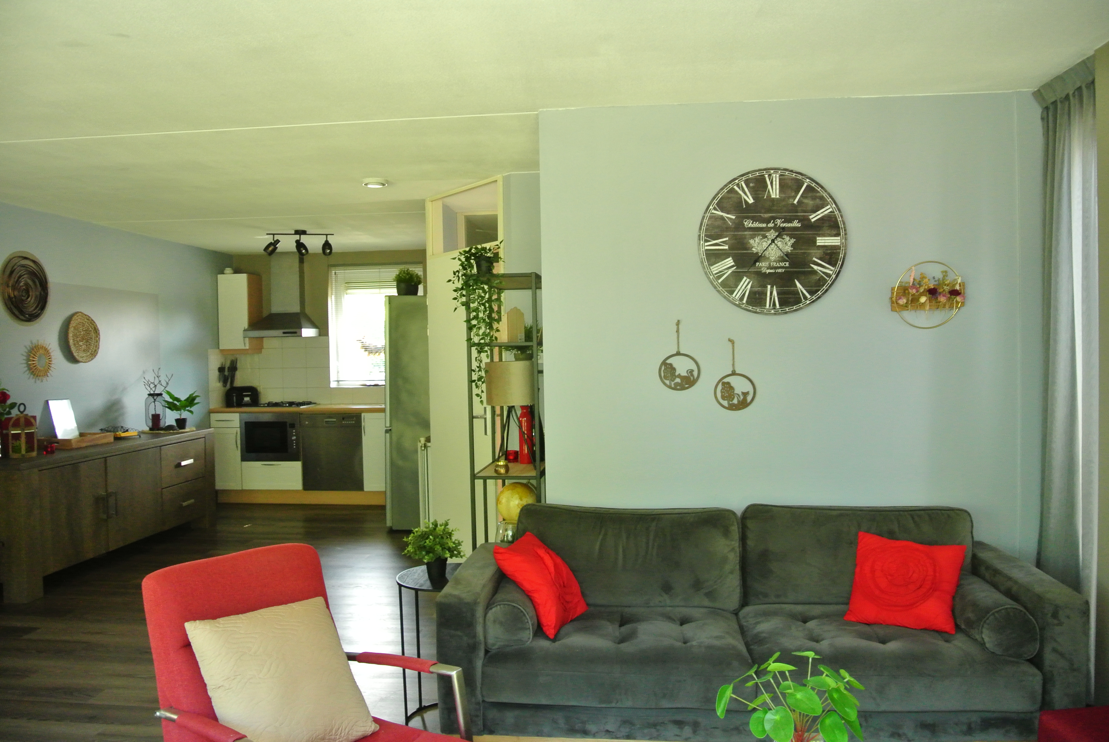 De chique open keuken nodigt uit tot koken en is voorzien van alle apparatuur. Gaskookplaat, afzuigkap, vaatwasser, magnetron, koelkast en koffiezetapparaat. De ruime woonkamer is voorzien van een laminaatvloer en is voorzien van een flatscreen-tv.