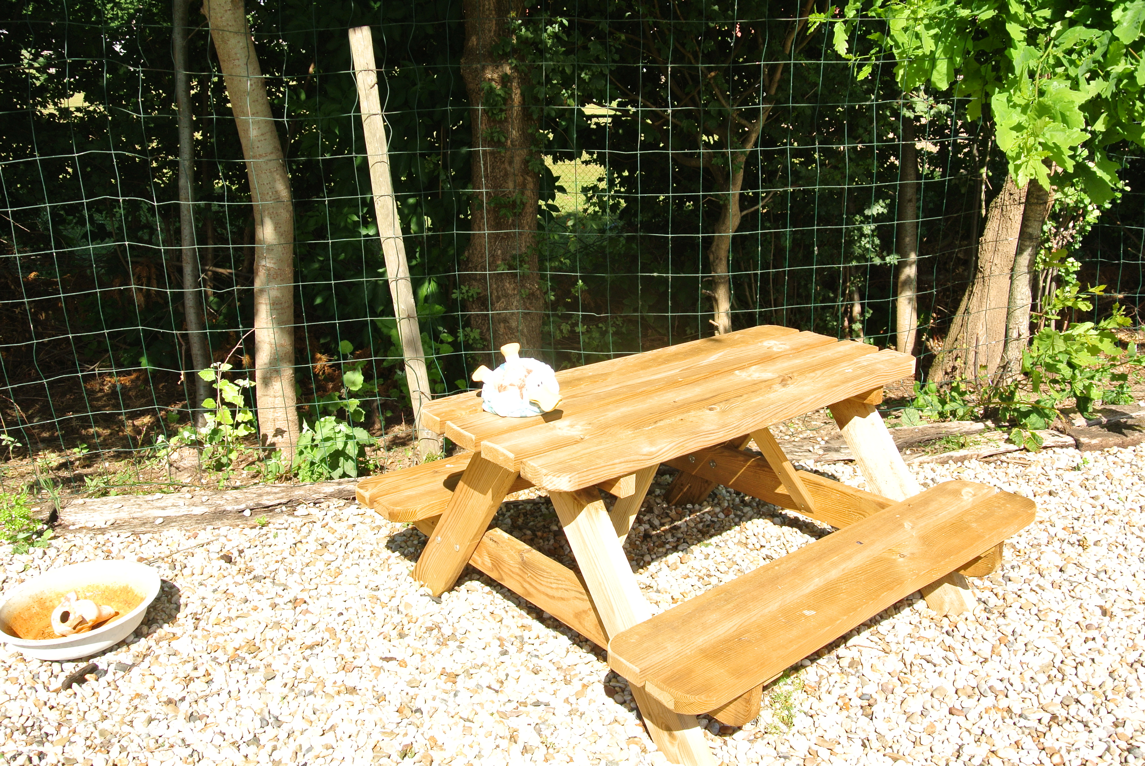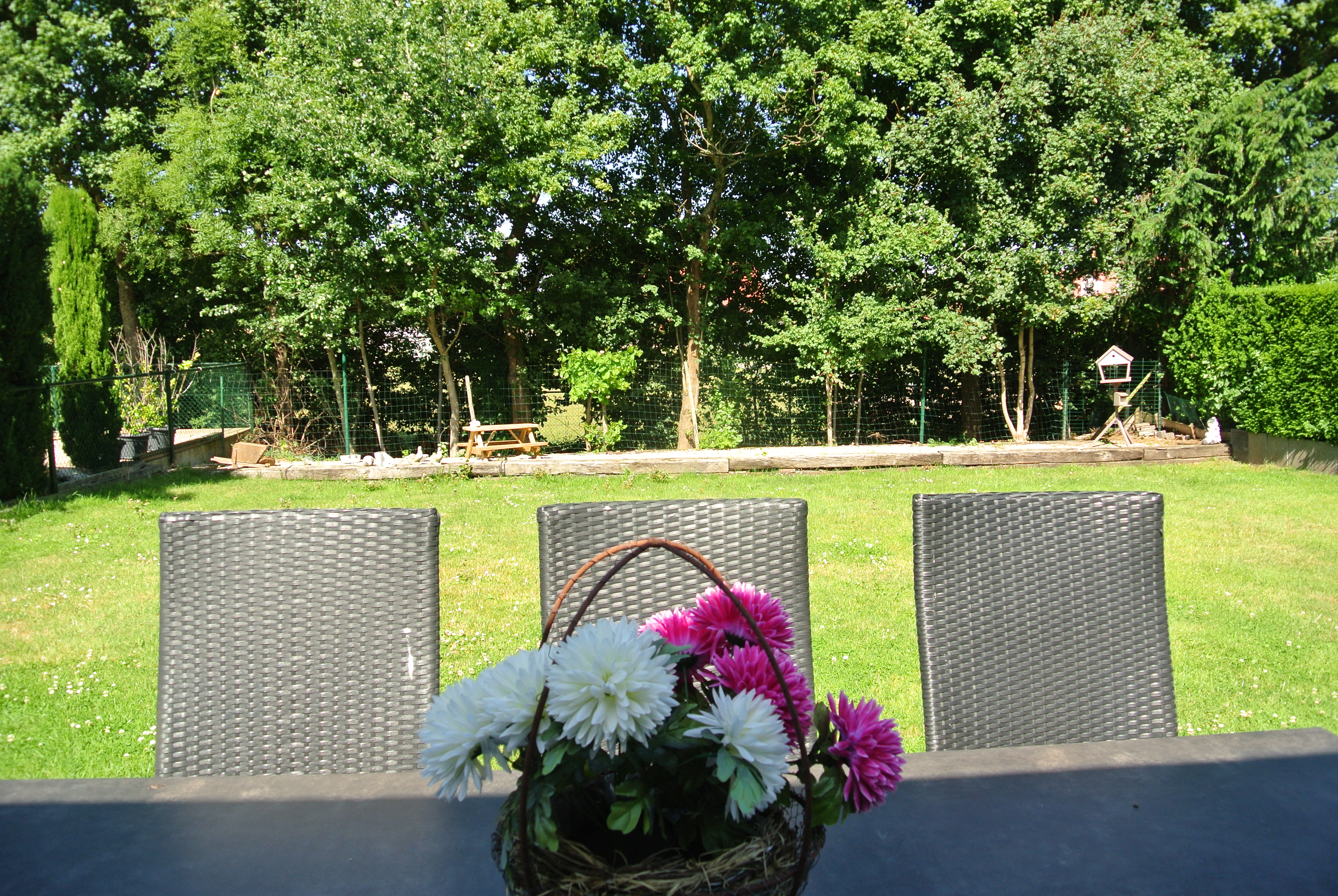 Het vrijstaande vakantiehuis heeft een grastuin, een betegeld terras en voldoende meubilair voor 6 personen. Een luifel zorgt voor schaduw. Het huisje is zeer gezellig ingericht.