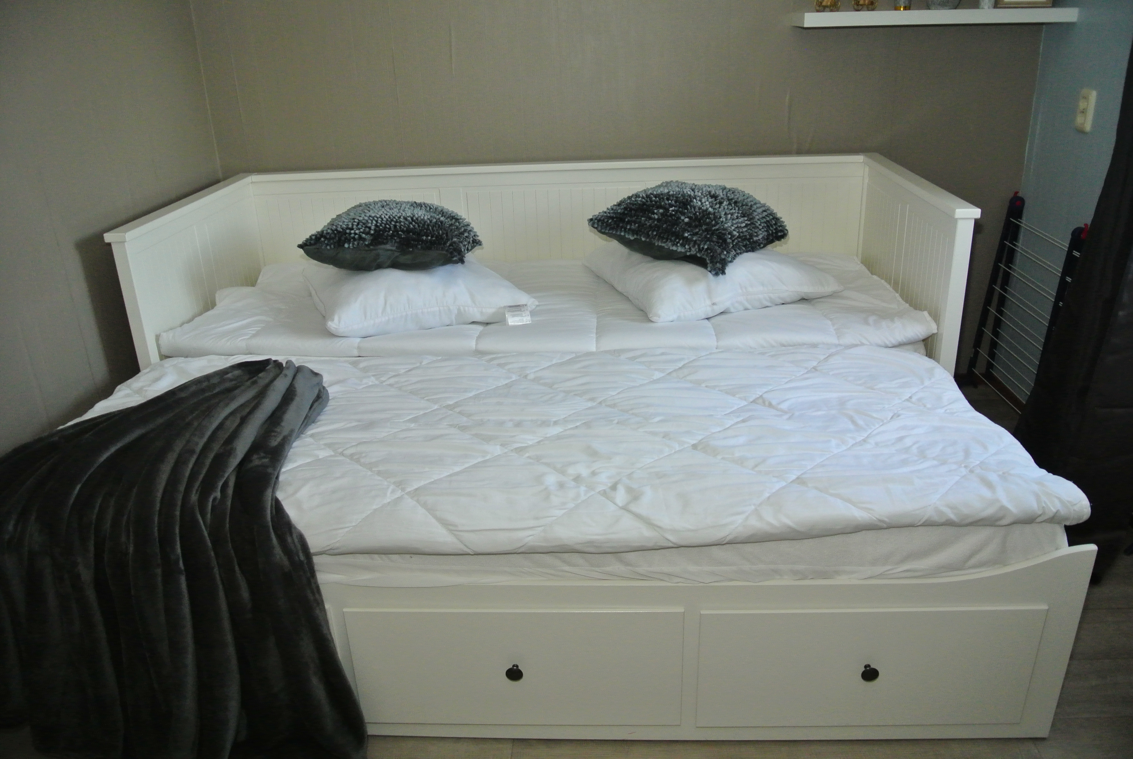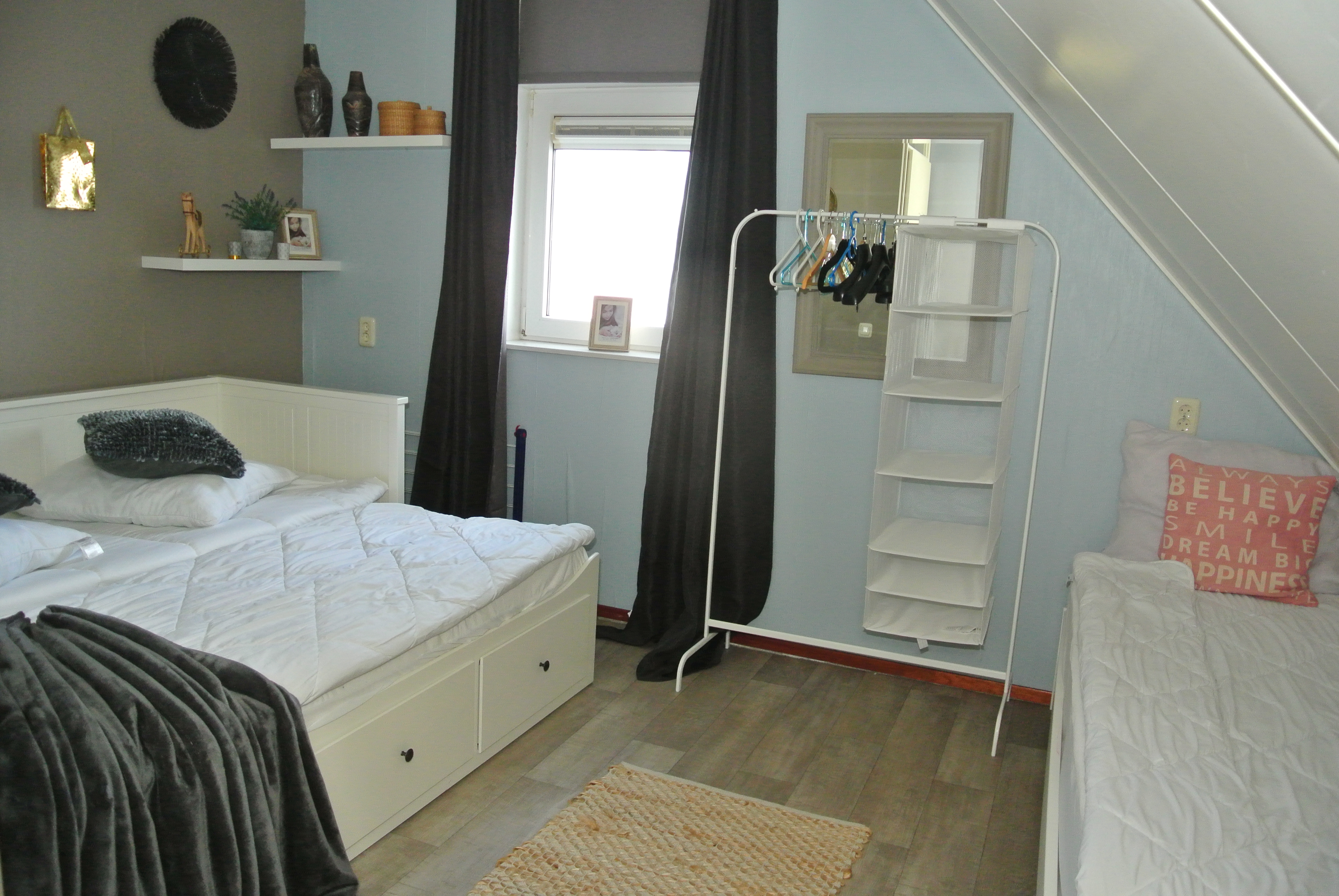 Alle 2 slaapkamers zijn boven. De vloeren zijn voorzien van laminaat. In een slaapkamer staat een tweepersoonsbed. In de andere twee slaapkamers hebben elk eenpersoonsbedden.